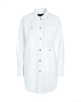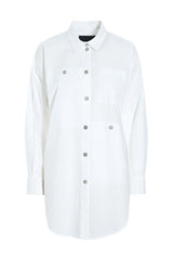 This shirt is made from sumptuous organic cotton. It features a classic design broken up by asymmetrically placed buttoned pockets. This shirt can be worn with virtually any skirt.