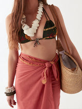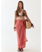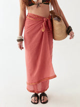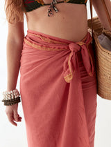 Crafted from lightweight cotton, the Nestor Pareo is a study in effortless versatility. Its delicate coral hue is accented with intricate embroidered borders, adding just the right amount of detail to a timeless essential.