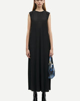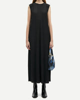 Finely pleated midi dress with a regular fit. Button and loop closure on the back. Main material made from an elastic blend including recycled polyester.