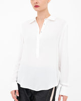 With a pullover design allowing for it to be easily tucked in, this versatile blouse is all about effortless elegance. Cut from luxurious silk georgette and beautifully finished with grosgrain trim, it’s a fresh new take on Elaine Kim's classic silk shirts.