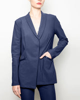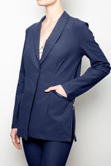 Lean, clean, and mean. Finish any daring look with the Tamara Shawl Collar Jacket, streamlining the body with Japanese Tech Stretch and a front button detail. Effortless and easy to throw on, this jacket is complete with flattering high side zippers that open for two styling options.