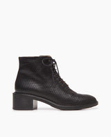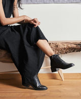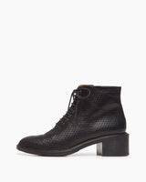 Love this shoe. For those of you who remember Joan & David. This is the look! Lace up ankle boot in textured black leather blends comfort and everyday practicality with cool-girl vibes.