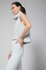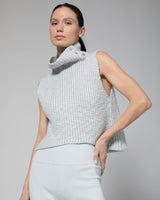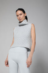 This vest is designed with snaps at the hem that let you twist it into a fun shawl or cover-up by snapping the sides to form cozy sleeves.