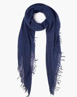 Chan Luu cashmere and silk blend come in Medieval Blue colorway. Fringe trim along the edge. Super soft and lightweight, this scarf is perfect for year-round wear.