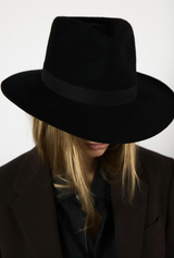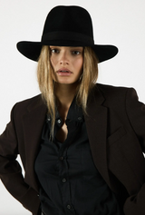 Our classic wool fedora made from packable wool which means you can easily pack it away in your luggage or bag wherever you may go. This is a staple hat to any wardrobe. A soft and malleable western shape that fits like a standard dress hat. Wear it as a subtle statement piece from day to evening.