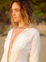 The Renewal Necklace, part of the Raw Elegance Collection, features four stunning 12-13mm Tahitian pearls. Strung on a double strand of hand rolled leather, this classic and sharp design is lovely for day or night. A signature necklace that will always be in style, the Renewal Necklace is one you won't ever have to take off.