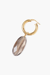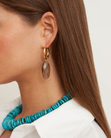 A keepsake collection of brown mother of pearl that dangles from bold hoop earrings.