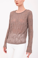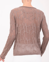 Elegant and simple, this crewneck top is done in a distressed knit for a hint of edge. Constructed from a soft cotton/hemp blend, it hangs beautifully and provides coverage while keeping you comfortable and cool. Perfect on it’s own or layered, it pairs beautifully with our coordinating Bonsai cardigan.