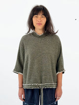 Versatile easy fit mini funnel pullover with frayed edge at neck, sleeves and hem with a drawstring. Made with their popular big loop terry.