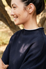 With the same over-sized fit as our LAB516TF, our LAB518TF Funnel Neck Sweatshirt perfectly combines the elegance of a classic mock turtleneck sweater with all the comfort of your favorite sweatshirt. With architectural elements and an eye for careful construction, our LAB518TF has a single seam down the shoulder creating a Continuous Sleeve with no shoulder seams.