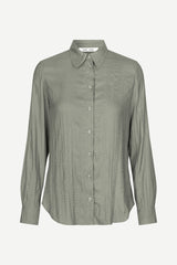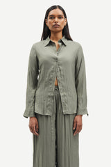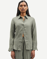 Long-sleeved shirt with a slim fit. Button closure on the front and buttoned cuffs. Fitted waist and curved hem. Structured main material made from a blend of recycled polyester and polyester. This product contains recycled polyester derived from pre- and post-consumer waste.