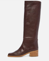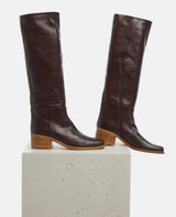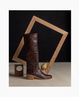 The Alto Boot is all impact. In deep chestnut brown pebbled leather, its tall shaft and rounded square toe channel subtle ‘70s energy with a modern edge. A natural leather-wrapped block heel offers lift without effort, while the flexible leather sole and full leather welt make it a pleasure to wear. Set on a lightweight pine heel wrapped in genuine leather stack, the Alto is made to move you confidently and comfortably through the season.