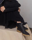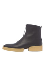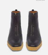 The Buzz Boot brings a sculptural twist to everyday wear. Made from soft black leather, it features a front zip and clean, modern lines. The chunky crepe-wrapped sole adds contrast and texture, while EVA inserts and a leather midsole keep the construction lightweight and responsive. With a semi-flexible crepe outsole underfoot, the Buzz is designed for a life on the go. Fit: Fits true to size. Spanish water-resistant veg tanned leather Heel height: flat feel 20MM heel with a 5MM platform Natural crepe outsole, leather mid sole Made in Spain.