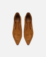 The Clever Flat brings soft structure and a sculptural edge to everyday dressing. In warm russet suede, the fluid lines and elongated pointed toe create a standout silhouette with quiet confidence. Built using sacchetto construction and left unlined, the suede molds to your foot with a second-skin feel. Lightweight and flexible, the Clever moves naturally with you.