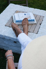 Oh and of course, with a molded arch you will cruise in beautiful comfort all day long. The rose gold metal nail heads on the inner footbed give the final signature touch to all beek products.