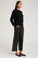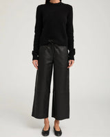 SPRWMN's take on an athletic track pant made entirely out of our buttery-soft leather. This cropped, wide-leg silhouette has a relaxed fit for a chic, sporty look. These pants are made in our signature French stretch-leather, so they feel like a second-skin and are extremely breathable for year-round wear. The adjustable drawstring allows for versatility and can be worn fitted to the waist, as desired.