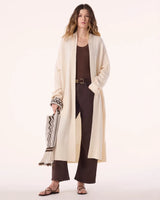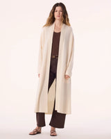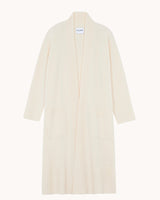 This long elegant duster features luxurious 100% cashmere and two convenient front pockets, all in a chic blanc color.