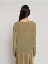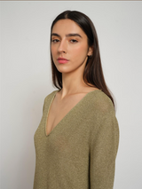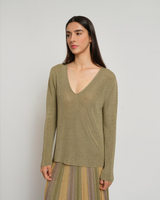 Rolled V-neck sweater with long sleeves in viscose and Lurex®.