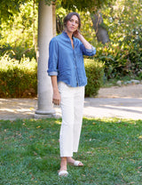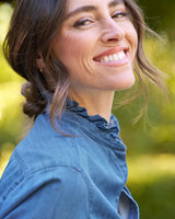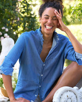 One of their best-selling button-ups, updated with a gorgeously feminine ruffled collar. Designed for a relaxed fit.