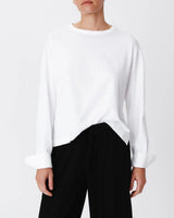 The Heavyweight Jersey Mixed Media Top is an ultra soft style with a relaxed fit. It features a smooth cotton body with contrast ribbing on the neckband and sleeves. Finished with buttoned cuffs for a versatile look.