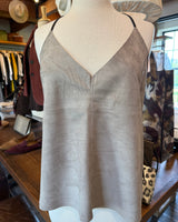 Add this cool, gorgeous natural napa leather and chiffon camisole to your wardrobe. Pair it with the Veda leather shirt jacket and look fabulous.