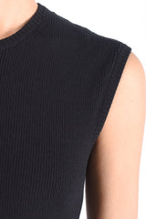 This muscle tee pairs perfectly with the Knit Rib Skirt by Lars Andersson and we include this in our Well Heeled Staples collection. We think a black pairing of a muscle tee and a knit rib skirt should be in everyone's closet and suitcase when traveling.
