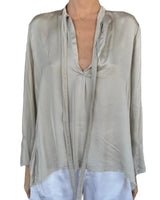 The Moulin Blouse is a stylish and versatile top that can be dressed up or down for any occasion. The tie at the neck adds an element of versatility - and can be worn loosely tied or more casually hanging down. Made from a lightweight and breathable satin finish fabric, this blouse is perfect for warm weather days or layering under a jacket in cooler weather.