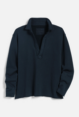 Let’s cut to the chase: our Popover Henley suits everyone. This runaway hit style has a slight drop sleeve and a straight raw-cut hem that looks cropped without actually sacrificing any length or coverage. This is the piece that takes you from running laps to lunch, from boating to brunch…you get the idea.