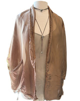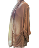 The Privee jacket, crafted from chiffon, is an exquisite and refined garment. Chiffon is a sheer, lightweight material renowned for its delicate and graceful drape, making it a preferred option for formal and evening attire. The chiffon Privee jacket lends an air of sophistication and femininity to any ensemble.