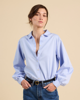 The Sierra Shirt is a button-down meant to live in your wardrobe for years. It truly gets better with each wear, growing softer every wash. This shirt has an oversized boyfriend fit completed with antique white buttons. Made from our coastal cotton twill and shown here in Light Blue.
