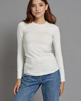 Soft-touch, super-washed long sleeve crewneck with finished trim. This is the white T layering piece that should be in every wardrobe. A Well Heeled essential by Majestic!