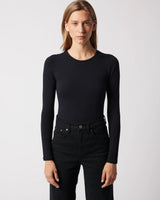 Soft-touch, super-washed long sleeve crewneck with finished trim. This is the black T layering piece that should be in every wardrobe. A Well Heeled essential by Majestic!