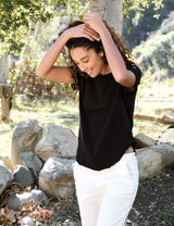 A Perfect Tee is the backbone of every great closet. Our iteration’s crew neck, high-low sides, and raw shirt-hem pairs beautifully with Wicklow, sweats, the Unforgettable Skirt...you name it. Insider tip: A tad boyish, this style also looks incredible tucked into high-waisted jeans.