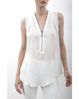 Umberta Silk Shell With Zip Trim in White