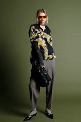 The Gilded Whisper silk blouse stands out for its soft texture and natural sheen, combining comfort and elegance in a versatile piece for the contemporary woman's wardrobe. Its design is enhanced by a triple snap cuff, providing a distinctive and functional detail, ideal for creating sophisticated looks with a modern touch.