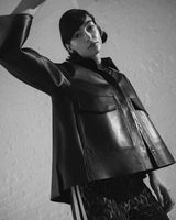 One of our favorite silhouettes. This season's staple leather swing shirt is having a moment. Pair this with the Kirby leather camisole top and look effortlessly cool. The sleek pointed collar creates a classic, sophisticated look but also pairs well with denim for a more casual vibe. Genuine Lambskin, Snap closure, faux front pockets, split sides, 3/4 bell sleeves.