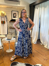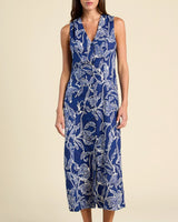 The Eleonore Dress is a midi-length dress fitted with a princess seam and discrete back waist elastic for added waist definition. Sleeveless, v-neckline, a functional button placket and our signature hidden side seam pockets. Shown here in High Tide and made from our soft linen.