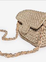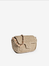 Shoulder bag, hand crocheted in Italy with our Lurex® yarns. It is the mini version with long chain of our Fenice bag.