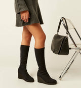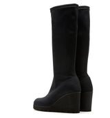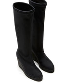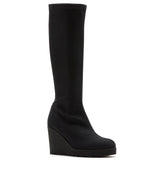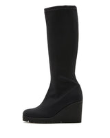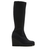Knee-high wedge boot featuring a stretch fabric for a slip-on construction, an XL Extralight® sole, sleek lines, and delicate topstitching.