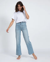 high rise ankle length stove pipe wide leg in light bleach wash