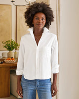 Signature bust flattering button placement and long sleeves with button cuffs